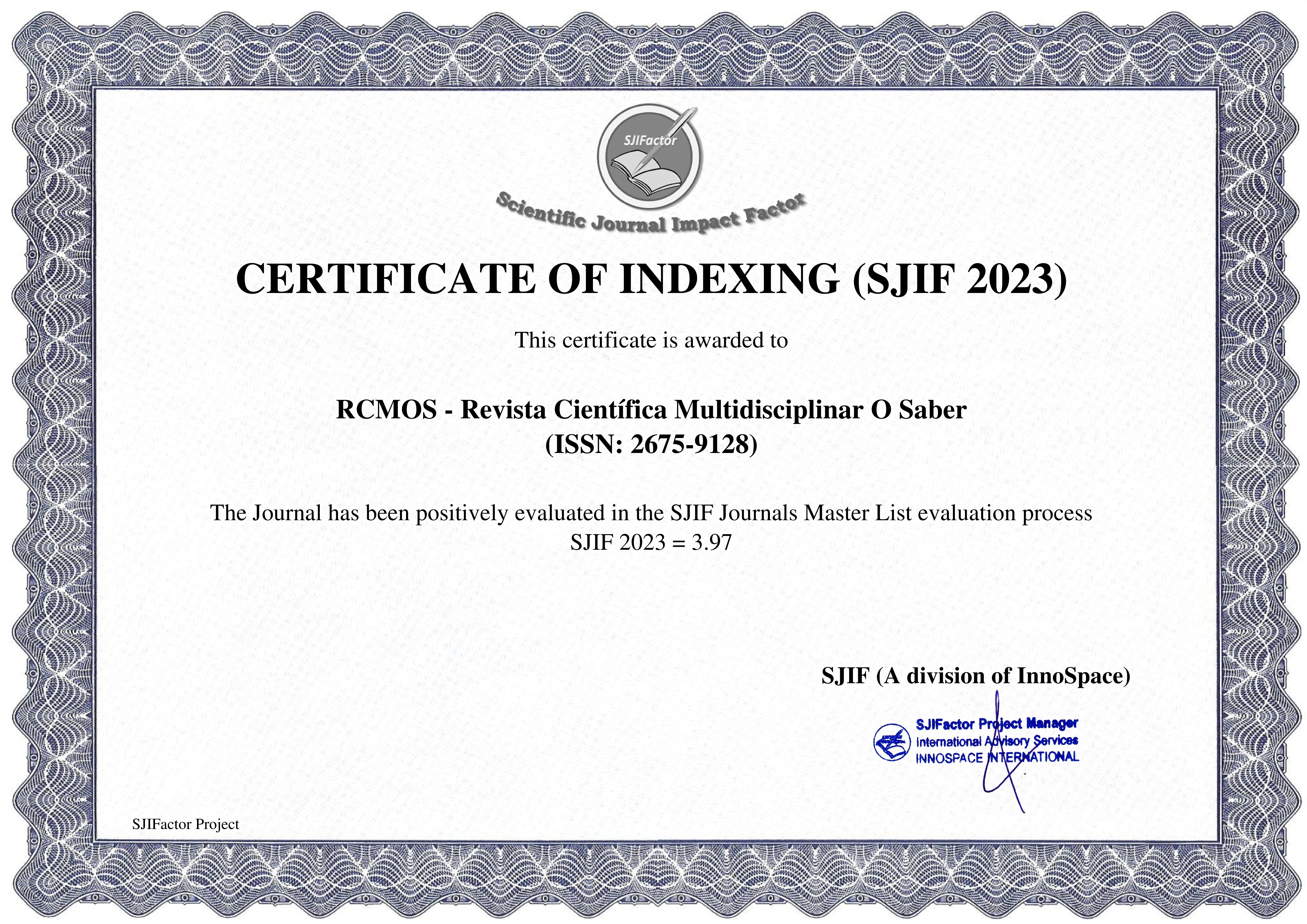 A RCMOS – Revista Científica Multidisciplinar O Saber encontra-se registrada e classificada na Plataforma Sucupira/CAPES e apresenta métricas auditáveis de impacto e de visibilidade acadêmica.